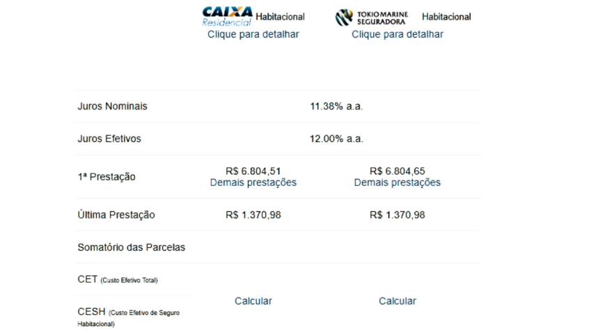 Se você utilizar um saldo de R$5.000,00 de FGTS, teremos em cada etapa